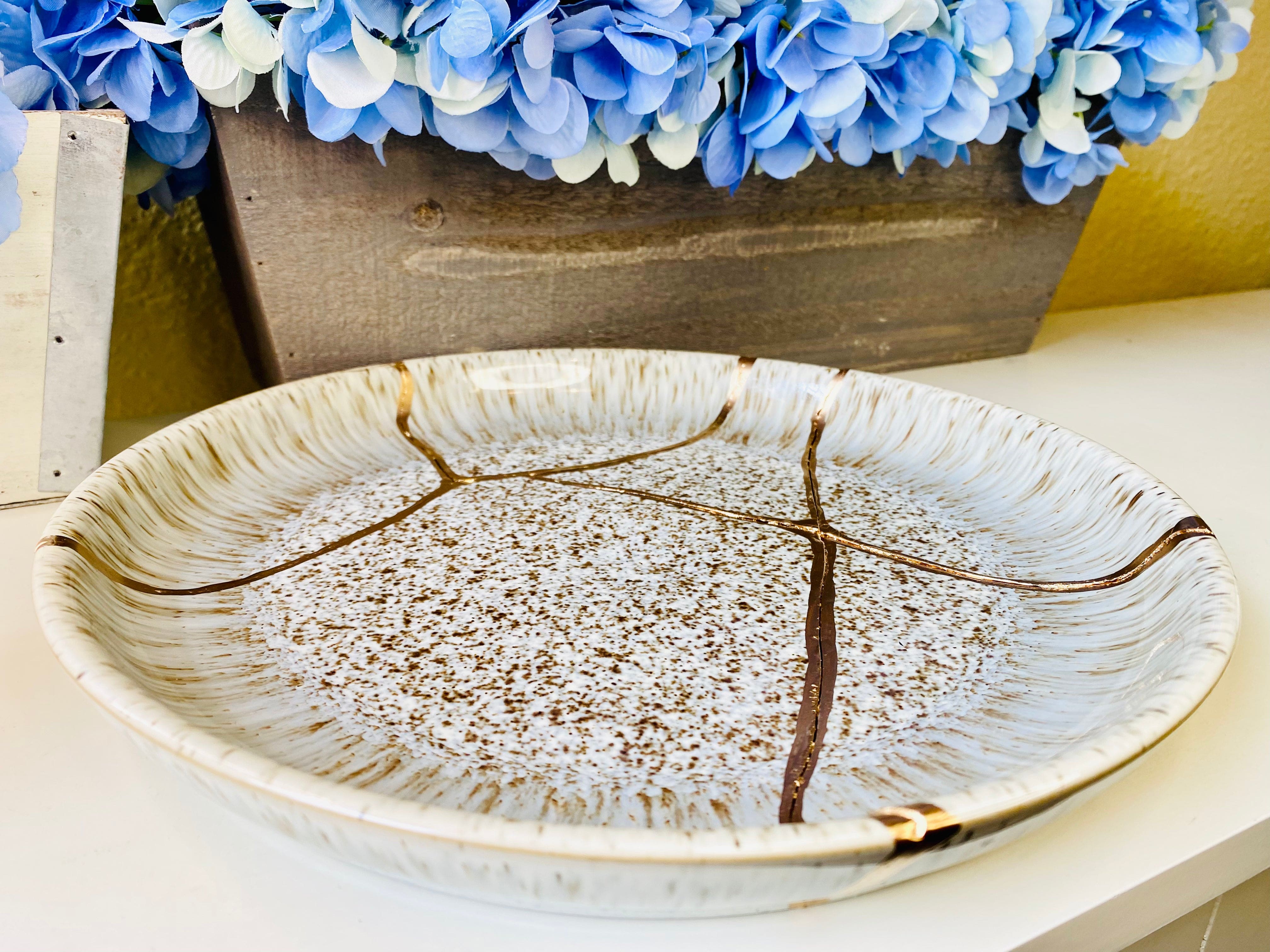 The art of Kintsugi is when broken pottery is repaired, with gold silver or brass filling the seams.